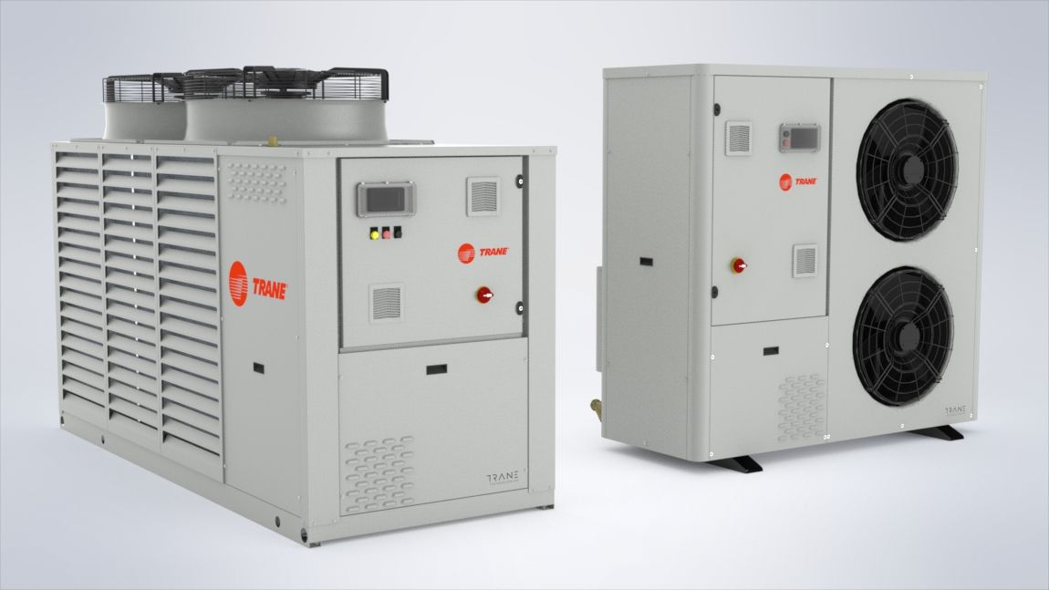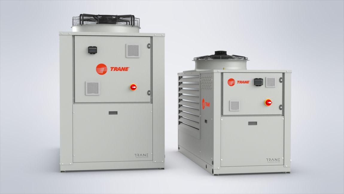 Trane ofrece una serie de enfriadoras de condensación por aire para una amplia gama de aplicaciones de refrigeración para procesos industriales y de confort con el fin de proporcionar las soluciones adecuadas para los requisitos específicos de nuestros clientes: enfriadoras de condensación por aire con compresores scroll desde 14 Kw con refrigerante con bajo GWP R454B, enfriadoras de condensación por aire con compresores de tornillo con refrigerantes 1234ze y enfriadoras centrífugas de condensación por aire y de alta velocidad.